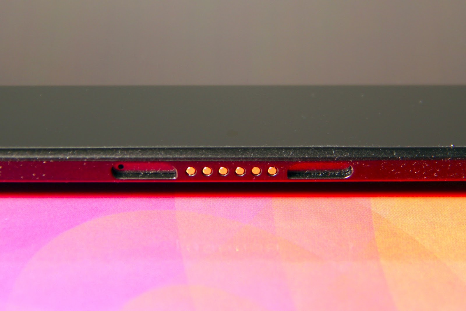 On the other is what counts six pogo pins and two magnetic chunks that snap into the nexus 10 s port.